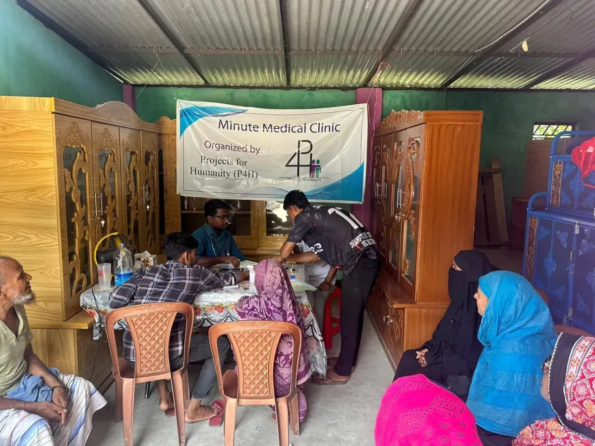 Each month, Projects for Humanity hosts a Minute Clinic event where a volunteer internal medicine doctor offers medical check-ups, screenings for diabetes and blood pressure, physical therapy, immunizations, and referrals to specialists. In severe cases, the organization also funds full medical treatments for patients unable to afford hospital care.